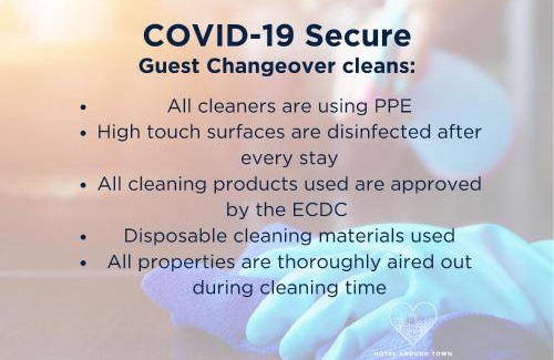 Linens, towels, and laundry washed in accordance with local authority guidelines