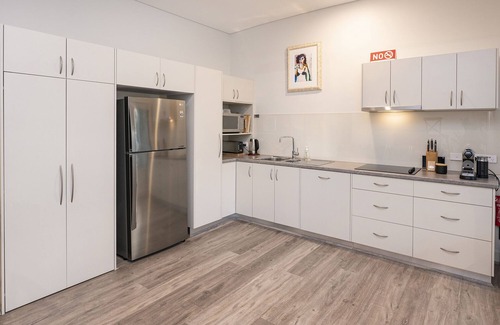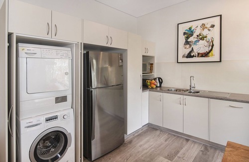 Fully equipped kitchen incl cooktop, dishwasher, fridge, microwave, plus washing machine and dryer.