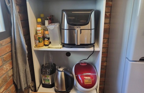 - Fully equipped kitchen with air fryer, rice cooker, toaster, blender, coffee maker etc.