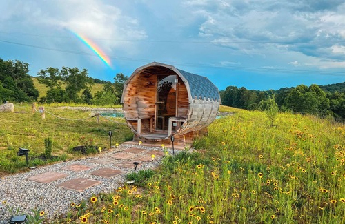 Luxury cabin nestled in a serene setting, this beautiful property offers a cozy escape, fabulous amenities and a one of a kind vacation experience. Features a luxurious green tea infused therapeutic Queen Bed. Guests said they had the best night's sleep ever.. Cedar Hot tub Firepit BBQ Hammock Rain Shower WiFi Sauna for a special guest fee. Unique hobbit inspired design and features makes for an incredible stay. Whether you're looking to unwind in nature or explore the nearby attractions, this cabin is the perfect retreat. Pet fee applies please register your pet at time of reservation.