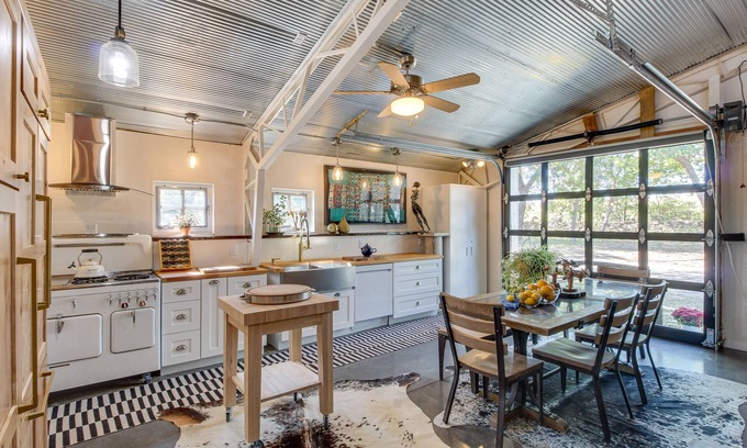 Welcome to Dogtrot Farm, home of this eclectic art studio turned vacation rental. Here, you'll be just moments from downtown, KU, and Lawrence, yet feel in a world all of your own. Admire original artwork, create your own music on the baby grand piano, cozy up in the reading loft, or relax by the fire pit with scenic landscape views. This farmhouse affords a truly one-of-a-kind escape!