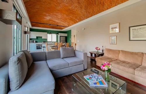This art-deco penthouse, renovated in 2018, offers you ceilings with Catalan vault, a private terrace of 30 m2, and a prime location near Chapultepec Park, Reforma, and Polanco. Ideal for couples, groups, or business travelers, with a capacity for 5 people.