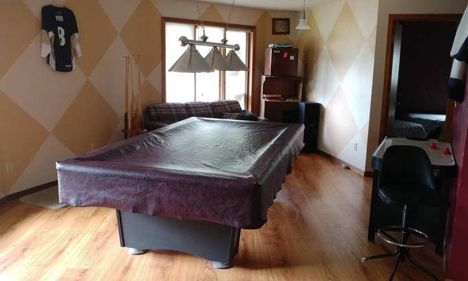 Enjoy this 3 bedroom, 2 bath home with large living area and open kitchen. Located just off Cedar Lake with a nice view of the lake, sunsets and stars. Secluded back yard with open farm field behind for plenty of privacy. Pool table, laundry and satellite TV included. Spacious basement for with 2 bedrooms and 1 bath. Garage space available. Nearby Schroeder Park available with a nice beach and camping area. ASK ABOUT EXTENDED STAY PRICING.