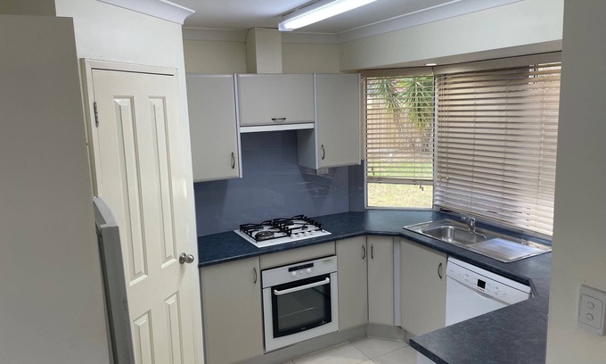 The property is fenced and has an electric gate so it is safe for guests with young children. The secure parking is shared only with the adjoining unit or rent them both and have the whole property to yourself.