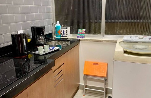 The kitchen is equipped with a stovetop and a refrigerator, as well as a coffee maker, an electric kettle, and a microwave. Connect to the free WiFi, or get cozy in front of the Smart TV. Bathroom amenities include a hair dryer, a bidet, and towels. And you won't have to pack extra clothes, because you'll also have access to laundry facilities. Other amenities at this 1-bedroom, 1-bathroom rental include bed sheets, air conditioning, and heating.