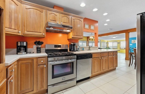 Enjoy modern amenities such as a private washer and dryer, complimentary WiFi, and smart TVs in all bedrooms. The residence also boasts a substantial two-car garage and ample parking in the driveway. The well-equipped kitchen, featuring a panini press, caters to the culinary needs of the group, while the layout, with a separate apartment and a vast open floor plan, makes Beachside Bliss an ideal choice for two families vacationing together.
