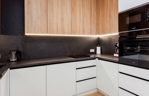 Unruga 2-Bedroom Apartment is exceptionally stylishly furnished and can accommodate up to 6 guests! It features a living room with a sofa bed, two bedrooms with comfortable double beds, a kitchen, and a bathroom. Guests have access to a range of practical amenities, including free Wi-Fi, a TV, a washing machine, an iron, a hairdryer, a refrigerator with a freezer, a dishwasher, an oven, a microwave, a Dolce Gusto coffee maker, and kitchen accessories.