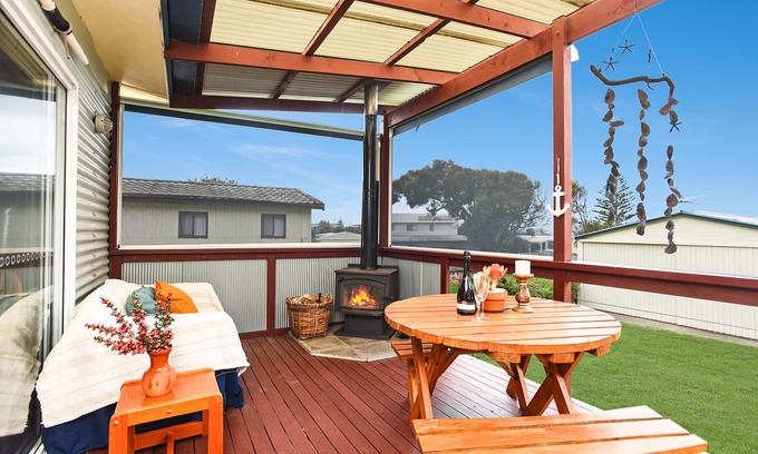Walk to surf, cafes & parks from this 2BR pet-friendly beach cottage in the heart of Middleton. Ideal for families and dog lovers, it features a fenced yard, full kitchen, AC, fire, BBQ & outdoor shower. Relax on the timber deck or stroll to the waves. Comfort meets simplicity in this laid-back retreat, just moments from Middleton Point. Off-street parking included. Your affordable coastal escape starts here.
