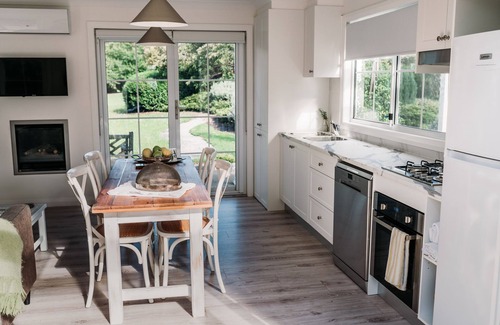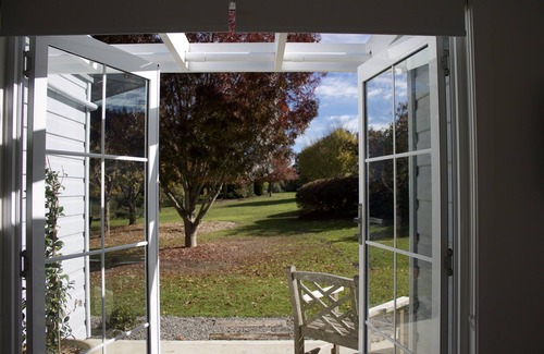 Enjoy a self-contained space with a cozy gas log fire, air conditioning, and a beautifully appointed interior. Light and airy with French doors opening out to mature gardens.