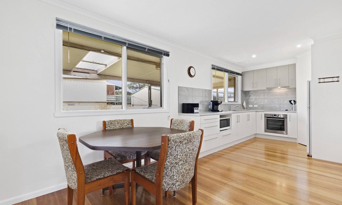 Indented Head is a great holiday destination, away from the hustle and bustle of daily life. Park the car, walk through the door relax, make yourself at home in our 3 bedroom holiday home. Relax in the lounge on the comfy couches, play some board games with the kids, or pop out into the large fully enclosed backyard ideal for that game of cricket, football or to just sit under the shade of the Wattle tree. The beach is 100 metres away so slip on your beach clothes, grab the bucket and spades to spend an idyllic break making family memories that last a life time.