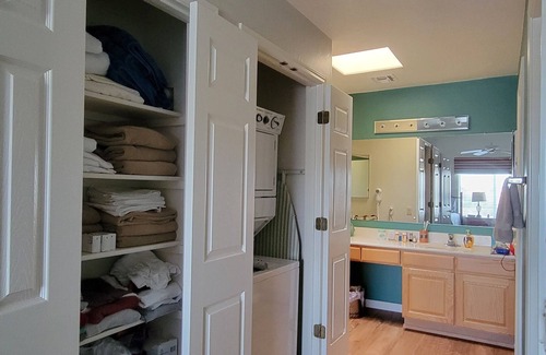Walking distance to restaurant and golf course. Comes with linens, towels, blankets, coffeemaker, refrigerator, toaster, range/oven, microwave, dishwasher, cookware, dishes, table and chairs, wide screen local