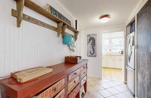 This classic Seaside Bungalow has been restored, keeping all the beauty and details of its original construction, yet updated with modern conveniences. Whether you are relaxing before the stone fireplace or cooking in the modern kitchen, you will be so happy you chose this home. Right off the kitchen is a charming dining area. The wall of windows allows the sun to pour into both the dining area and kitchen.