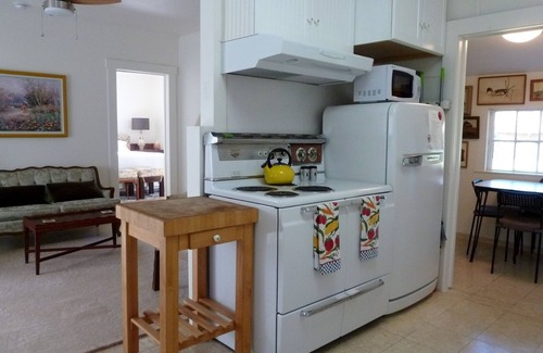 The Tolman House was built in the late 1800's. The 3 -bedroom, 2-bath house boasts a large lot with a lawn and picnic/barbeque area and completely fenced outdoor space. It is dog friendly. (max 2dogs).There is one king bed, one queen bed, one double bed, central heating and air, a full kitchen with a dining nook, living room and a sunny banquette seating area. One bathroom is new and modern, with a shower, while the other is original, with a claw foot bathtub, located off the master bedroom. The house is the perfect size for two or three couples or a family. It sleeps 6 people.