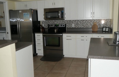 The home offers a 2 car garage, bicycles, some pool toys, gas grill, beach chairs and an umbrella, and cooler for your use. Just bring your swim trunks!