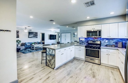 I personally designed every detail of this 1900 square foot, 4-bedroom, 2-bathroom home to ensure that you and your guests thoroughly enjoy everything my home has to offer. Each bedroom has a luxurious feel that is decorated with a contemporary and modern style. The property features brand new furniture, high-quality, comfortable mattresses draped in soft, hotel quality and high thread count bedding. The entire home is fitted with plantation shutters to keep out the heat and light when you want to get some uninterrupted rest and relaxation. The home has been newly remodeled and has every upgrade you could ever want.