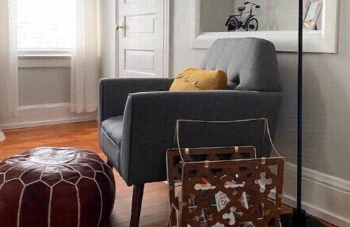 Entire upstairs apartment with outdoor seating on front porch.