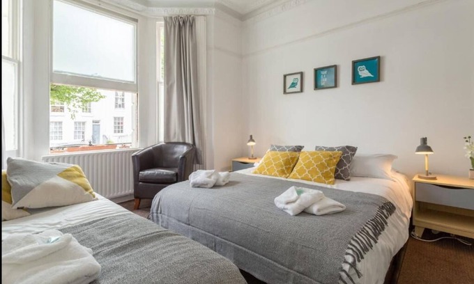 I am excited to offer you this beautifully decorated, light and airy double room! Spacious and modern, with big windows, it is a great choice for couples or those on business trips. Travellers with children are welcome! Situated moments away from the heart of Brighton and just a 10 minute walk to all amenities, it provides you with excellent travel links across the town. Enjoy the space and benefit from its great location!
