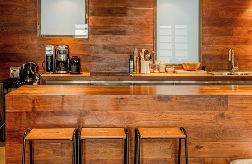 A chef’s dream, the fully equipped kitchen includes everything you need, with the added convenience of a bar area for casual dining. The adjacent dining area, set near a large window, comfortably seats up to seven guests—perfect for memorable gatherings.