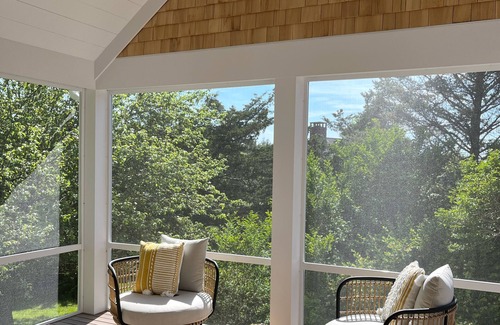 Upscale home in fantastic location! This newly renovated home boasts charm and space that is unparalleled. Gourmet kitchen, open concept living space, 2 bedrooms including primary bedroom with private bath, den/tv room, sunroom, and screened in porch. Excellent entertaining space outside as well on the private back deck and patio. A cheerful mudroom area, enclosed outdoor shower, and 2 car garage completes this wonderful vacation home. Thoughtfully designed with not a detail missed, this Cape Cod cottage will become your new home away from home.