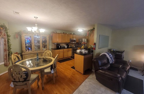 Spacious and Stylish Interior. Fully equipped Kitchen. Very spacious Living Room and Dining Room . Super comfy linens and beds. 3 TV's. Work Desk. Board Games. Relaxing back yard with Hot Tub, Gazebo, Basket ball Goal, Corn Hole game, grill and fire pit. Excellent location to many attractions.