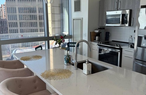 Upscale home with breathtaking view, full kitchen, living room and balcony | Apartment in Cambridge