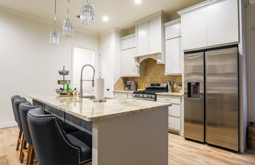 You are going to love your stay at our new construction 4 bedroom & 2 bathroom home with an open kitchen, living, and dining room at a great location in Lubbock. This home is convenient to Tech, Covenant Hospital, shopping and is centrally located in an upscale family neighborhood. This beautiful home features a luxurious master suite, a spacious king in the 2nd bedroom, & comfortable queens in the 3rd & 4th bedrooms.
