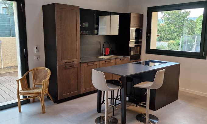 While you're here, you can enjoy all the comforts of home and more, including WiFi and a bidet, as well as air conditioning and an ironing board. Other amenities include laundry facilities, towels, soap, and toilet paper.