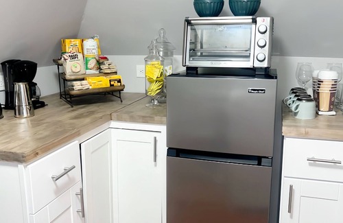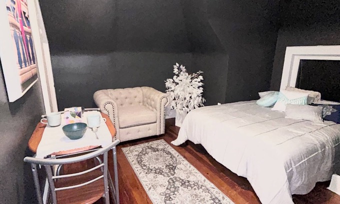 Urban Attic is a cozy, bright and stylish retreat. It's like getting 2 hotel room suites. One bedroom has a full size bed & a table for 2. The other has 2 twin beds & a table for 2. Full kitchen and bath.