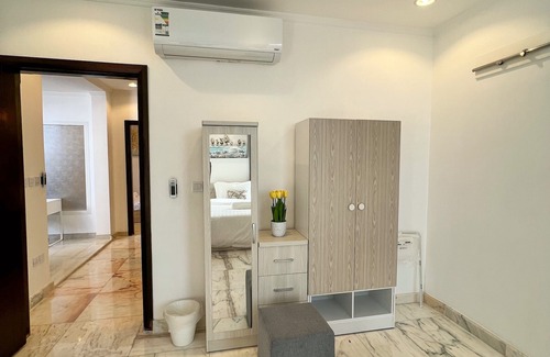 The whole group will be comfortable in this spacious and unique space. It’s near to the best malls, entertainments, corniche & sea walk. The apartment is fully furnished & serviced. The location is 20 mins away from the Airport and less than a 5 minutes walking distance from the beach & shopping malls.