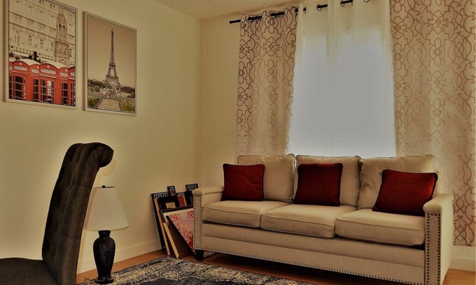The space is ideal for holidays, business travelers, and students attending UND or Northland Community College. Unwind quietly and save on affordability by opting for the whole place instead of a small hotel room or sublet. Located in a four-plex, the Urbana is conveniently situated at the back for easy parking and access. Each apartment in the four-plex has a separate entry and is private. All utilities are included, with plenty of parking available. Off-street parking is also an option. Enjoy free WiFi and explore various restaurants and pubs within walking distance. This well-decorated apartment, featuring modern furniture from Wayfair and local collections, offers two living areas, making it suitable for larger families. Welcome to Grand Forks, ND, home to the University of North Dakota (UND).