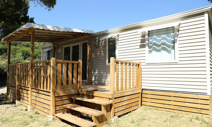 Ushuaïa Villages Camping Figurotta * - Prestige mobile home 40m² - 3 bedrooms + air conditioning + TV + Covered Terrace 8 people has 3 Bedrooms , 2 Bathrooms, and max occupancy of 8 people. The minimum rental for this property is 1 nights, but this can change depending on the season you plan on staying. Previous guests have given good rated it, and VRBO labeled it a top-rated House because of the excellent services rendered by the owner or manager of this House, and has consistently provided great experiences for their guests. Most families or guests that use it recommend it to their friends and some of them are repeat guests. House has a friendly neighborhood, and the Bizanet has interesting places to visit. If you want to learn more about the House in Bizanet, such as places to visit and things to do nearby, you can check below to learn more.