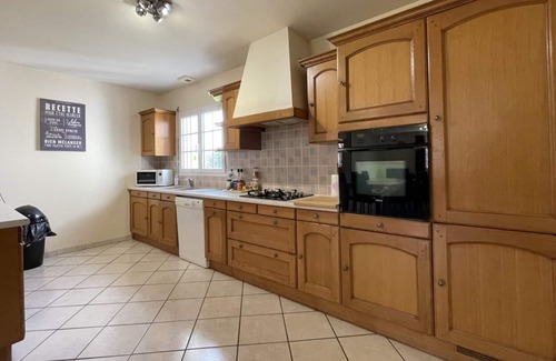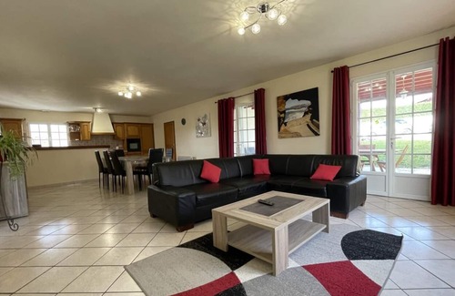 Completely renovated gite, laid out on one level in a house with year-round rental upstairs. Access and private and adjoining outdoor spaces. Quiet area close to nature. Equipped kitchen (fridge-freezer, microwave), large living room with lounge. 3 bedrooms (2 double beds, 1 double bed). Large bathroom. WC. Electric heating included, sheets provided/beds made, possibility of renting towels and household linen. Internet connection. Baby equipment: bed, bath, high chair, changing mat, stroller. Garage, car park, covered terrace, large private enclosed grounds, garden furniture, deck chairs, barbecue/plancha. Gîte located 2.7 km from the town of Ahetze, 9 km from Guéthary and 12 km from Biarritz and St-Jean-de-Luz. Fitness trail (CRAPA) 200m away.