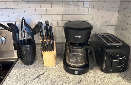 - Full kitchen supplies (pots, pans, spices, dishes, blender, etc.)