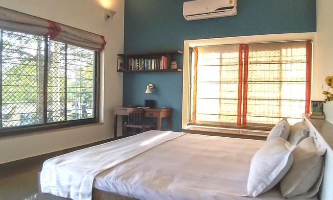 Good for people who want to do Eco tourism. Walkthrough neem trees and up the to this cosy retreat spilling into the bright passage- one leading to the kitchen, catering for all your needs with electric oven and hob, microwave and fridge for your cooking. After a full day out relax in the studio living area with a sofa watch tv or read a book under the terracotta verandah. Have a bar-be-cue under the neem tree in winters and then retire to your double bed, designed for a good night’s sleep with superb views to wake up to.