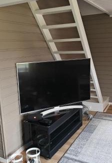 BathroomToilet, Towels, Toilet paper, Shower, Bathtub or shower, Guest bathroom, HairdryerMedia & TechnologyFlat-screen TV, TVOutdoorsTerrace, Balcony, Outdoor furniture, Outdoor dining area, Barbecue, PatioKitchenDining table, Refrigerator, Stovetop, Electric kettle, Oven, Microwave, Cleaning products, Wine glasses, Kitchenware, KitchenLiving AreaSofa, Fireplace, Dining areaViewView, River view, Sea view, Garden view, Mountain viewGeneralSmoke Alarm, Fire extinguisher, Key access, Hardwood or parquet floorsActivitiesSaunaBedroomLinensAccessibilityUpper floors accessible by stairs onlyBuilding CharacteristicsDetachedEntertainment & Family ServicesBoard games/puzzles |