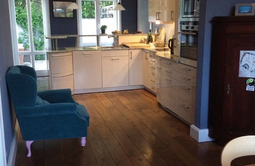 A high quality fitted kitchen, dishwasher, microwave, coffee maker, kettle