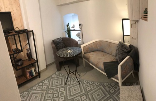 Our 30sqm 2-room apartment (ground floor rear) offers you space for your well-deserved vacation. The living-dining area has plenty of seating with a professional satellite TV, radio and WiFi. In the bedroom there is a large box spring double bed (180 x 200 meters) with adjustable slatted frames for your restful sleep. Here is a comfortable couch that can be converted into a bed. The couch has a lying surface of 80 x 190 meters. The fully equipped kitchenette (fridge with freezer, 2-burner stove, grill, microwave, coffee machine, toaster and kettle is well equipped. To eat, sit down at the dining table in the living area or simply on your own terrace in front of the apartment. The shower / bathroom is modern.