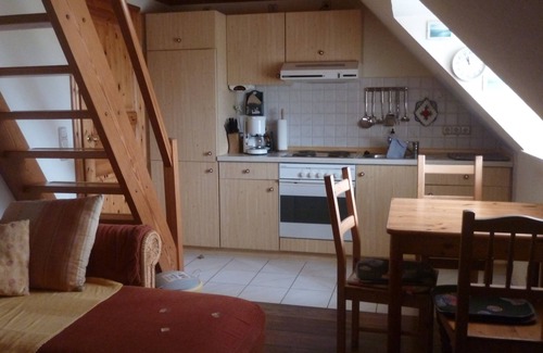 Dear guests, you can expect us a lovingly furnished apartment, a bit Nordic. the apartment is fully furnished. Your beds are already occupied when moving in. It is a 1.5 room apartment with an open bedroom. You have a view over meadows and fields and you may even discover a few deer and rabbits. You can relax in our natural garden, sit in the sun or have a barbecue. In the evening you can watch the endless and wide starry sky. Because here nothing obscures the view, at most the clouds.