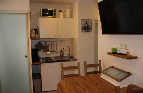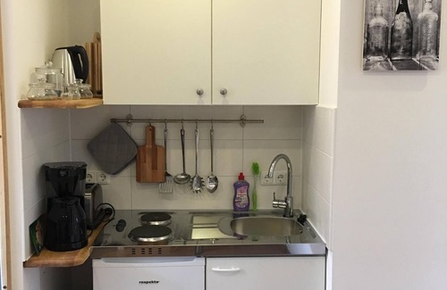 We offer one of our beautiful studio apartments in a quiet, but also close to town location.