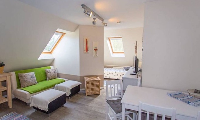 Our apartment Richard!The approx. 40 m² large apartment Richard is lovingly and modernly furnished and is located on the upper floor of the holiday home at the Museumshof. The apartment has a living room with sofa bed, satellite TV, a kitchenette with stove, dishwasher, microwave, toaster, kettle, coffee maker and refrigerator. The sofa bed can be prepared for two guests (up to 12 years) as an extra bed if required. A Wi-Fi connection is available. A sleeping area is optically separated by a wall projection from the living area. Here are two Einzelbetten.Über a space-saving staircase leads to the lying in the attic bedroom, which is equipped with a comfortable double bed. The bathroom has a shower, toilet and vanity. Sheets and towels are included upon arrival. Outside you will find comfortable seating and a barbecue. Small, nice dogs are allowed on request.