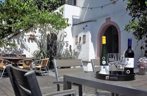 The apartment Rosengärtchen offers a flat-screen satellite TV, a single kitchen, a bedroom with a bathroom and is approximately 45 square meters. The bathroom is equipped with a shower. The beds are made and towels are provided. You can grill with seats on the terrace at any time. Taste our award-winning wines and enjoy the sunset on warm summer evenings in our courtyard or under the wine pavilion. The Moselle promenade, the supermarket, bakery and butcher are within walking distance. An ideal starting point for cyclists and hikers.
