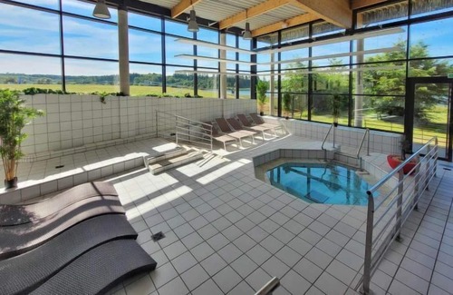 On the north shore of Lac du Valjoly, the residence is made up of 180 accommodations divided into semi-detached cottages or hamlets of semi-detached single-storey timber-framed cottages residence, surrounded by trees and meadows. Outside the resort, 3 km from the centre of Eppe Sauvage. In the complex: reception, internet access, washing machine, tumble dryer (for shared use, extra). Parking. Grocery, restaurant 500 m. Hiking paths: Parc Naturel Régional de l'Avesnois. Please note: car recommended. The photograph shows a typical example. Additional accommodations can be booked. Free access to the indoor aquatic center with wave pool, rapid river, waterfalls, massage jets.... Relaxation area, activities to be paid on site: sauna, hammam, nautical base, equestrian centre, mountain biking. Satellite TV (extra). TV rental 35 euros/week. Free Wi-Fi at reception.