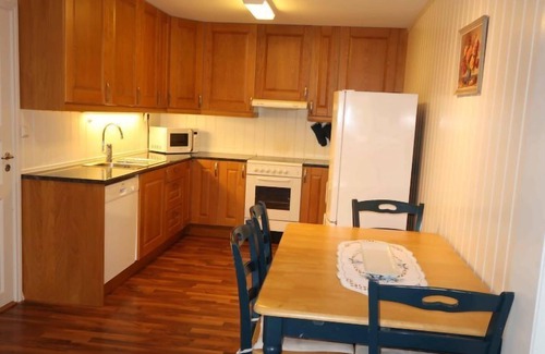 "Anneks", 4-room house 100 m2 on 2 levels. Cosy furnishings: open living/dining room with Scandinavian wood stove and TV. Exit to the terrace. 1 room with 1 double bed (150 cm, length 200 cm). Open kitchen (oven, dishwasher, 4 induction hot plates, toaster, kettle, microwave, electric coffee machine). Shower/WC. Floor heating. Upper floor: 1 room with 1 double bed (120 cm, length 200 cm). 1 room with 2 beds (90 cm, length 200 cm). Facilities: washing machine. Internet (WiFi, free). Please note: non-smoking house. Maximum 1 pet/ dog allowed. 924531169