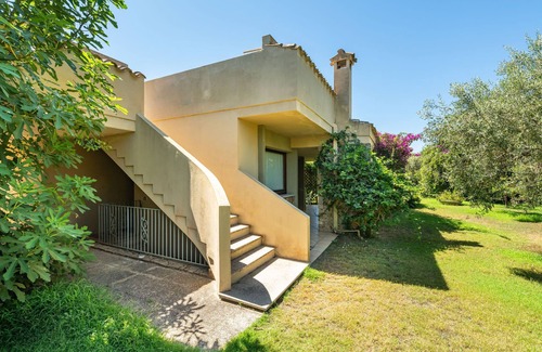Small residence "Carlo", surrounded by trees and meadows. 2.5 km from the centre of Villasimius, in a sunny position residential area (villas), 400 m from the sea, in the countryside. For shared use: garden 200 m2. Private: outdoor shower. Motor access to the house (300 m via unmade road). Parking on the premises. Supermarket, restaurant, bar 200 m, bus stop "via Roma La Lanterna" 2 km, railway station "Cagliari" 60 km, ferry "Cagliari" 60 km, sandy beach 400 m. Sports harbour 1 km, golf course (18 hole) 1.5 km. Nearby attractions: Cagliari 50 km. Please note: car recommended. Animals in the neighbourhood. The photograph shows a typical example. The complex consists of 5 independent cottages, close to each other, all with roof terrace accessible via outdoor stairs.