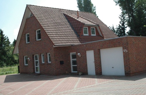 Our holiday home in Sande (Friesland) offers you an ideal starting point for your family or group holiday for up to 11 persons. Also your dog is gladly seen - in the large, fenced garden can this play and rage. In a total of 5 bedrooms with double beds and flat screen TV as well as in the dressing room with a single bed and baby bed (can also be placed in the bedroom), you will find the peace that you are looking for. The large living room with adjoining dining area leaves nothing to be desired - the media area is equipped with a flat-screen TV and a stereo with USB slot. The large leather couch set as well as the lovely decoration ensure a comfortable atmosphere. From the living room you have an optimal view into the garden, on the terrace you can grill in nice weather. Corresponding terraces can be found in the separate garden house. Furthermore, one bedroom has a balcony, another has a direct access to the Nebenterrasse. In the fully equipped kitchen you will find everything you need for cooking - from the coffee maker to the oven with ceramic hob, from the coffee and dining service to the microwave and dishwasher. You simply cook your breakfast egg in the egg cooker, the toast is toasted in the toaster. Also here you will find a dining table with chairs. In the adjoining adjoining room, shopping carts and drinks boxes can be stowed away optimally. The bathroom has, among other things, a shower, a bathtub as well as a WC - hair dryer, hair straighteners, shampoo and shower gel are available. There is a washing machine and a dryer in the separate utility room, as well as an ironing board, an iron, a bathtub and a clothes rack. You can park your car in the garage or in the parking lot.
