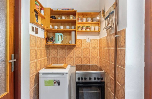 3-room house on 2 levels. Living room with veranda with open-hearth fireplace and satellite TV. Small kitchen (4 hot plates, oven, kettle, microwave, grill) with dining table. Shower/WC. Upper floor: 1 room with 1 bed and 1 double bed. 1 room with 2 beds. Electric heating. Facilities: washing machine. Suitable for families. Maximum 2 pets/ dogs allowed.