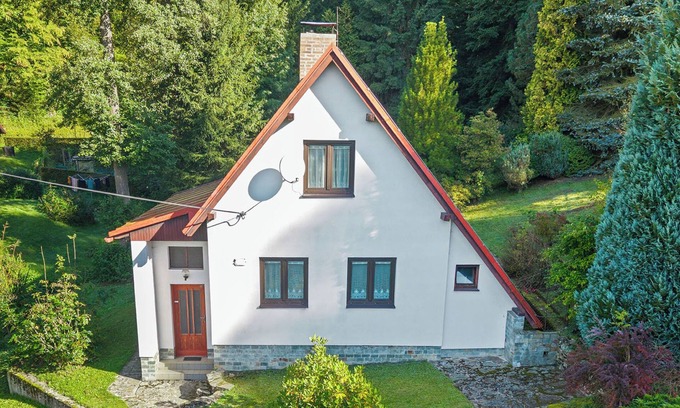 Cosy country house "Jahor", 2 storeys, detached. In the resort Bzí, in a quiet, sunny position, along the wooded area. Private: beautiful, well-kept garden 1'000 m2 (fenced). Terrace, garden furniture, fireplace. In the house: central heating system, washing machine. Shop 500 m, supermarket 5 km, restaurant 2 km, bus stop 300 m, railway station "Železný Brod" 5 km, public bathing area 6 km. Walking paths from the house 10 m, cycle lane, cross country ski track. Nearby attractions: Malá Skála/Žlutá plovárna 6 km, Skalní město/vyhlídka Zahrádka 6 km, Zřícenina hradu Vranov, Lanové centrum 6 km, Frýdštejn 10 km, Hrubý Rohozec 12 km, Zámek Sychrov, Valdštejn 17 km, Hrad Trosky 26 km, Prachovské skály 35 km. Well-known ski regions can easily be reached: Alšovice 4 km, Zásada 9 km, Kozákov 12 km, Buřín, Tanvalský Špičák 20 km, Bedřichov 22 km, Harrachov 32 km, Špindlerův Mlýn 50 km.