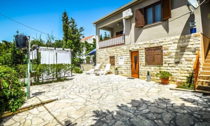 Rovanjska 10 km from Starigrad-Paklenica: Single-family house "Marija". In a quiet position, 50 m from the sea, 50 m from the beach, in a cul-de-sac. Private: property (fenced). Outdoor shower, terrace, garden furniture, barbecue. In the house: internet access, washing machine. Parking (for 2 cars) at the house on the premises. Shop, restaurant 350 m, bus stop 230 m, sandy beach 150 m, concrete beach 50 m.