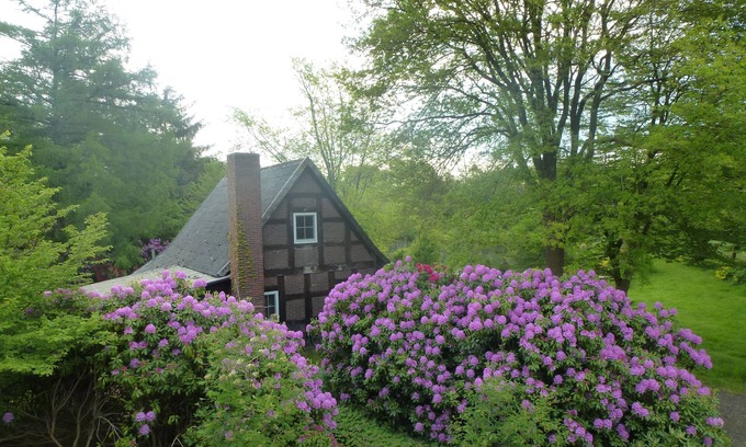 The complex consists of 2 cottages on a quiet 18th 000 square meters, fenced plot. The "Bickbeerhütte" can accommodate 2 to 4 people. the "packing shed" for 2 to 6 people. Dogs are welcome guests. The Häuer were once manager house and packing shed of a blueberry plantation. The rest of the plantation on the property is at the guest's free disposal, harvest time from late July to early September. Depending on the number of people you will be assigned the Bickbeer hut or the pack shed. The property is always rented to 1 tenant at the time. On the property there is also a 800 square meter large bathing pond with dock and swim ladder. The coast, Holland, Bad Zwischenahn, Oldenburg, Bremen or Leer can be reached within an hour by car. On a well-developed, signposted cycling paths can parkland Ammerland know.