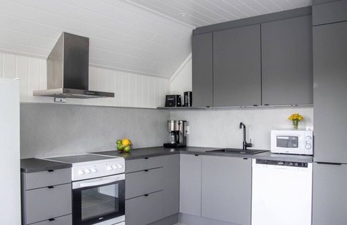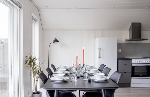 Very modern certified fishing house "Brosme", 3 m a.s.l built in 2020. In the district of Kallavåg 2 km from the centre of Langevåg, 34 km from the centre of Haugesund, 47 km from the centre of Leirvik, 5 m from the sea, direct access to the beach, in a cul-de-sac. For shared use: natural state property 5 ha. Patio, barbecue house, bathing jetty bathing place, fish-processing table. Available: canoe (extra). Motor boat (on order). Steep motor access (via unmade road). Parking on the premises. Shop 2 km, bus stop "Kåso" 2 km, railway station "Stavanger" 117 km, ferry "Stavanger" 117 km, sandy beach 15 m (small). Fishing possibilities 5 m. Nearby attractions: Insel Espevaer 4 km, Wikingermuseum Avaldsnes 40 km. Please note: Additional accommodations can be booked. The house is located directly next to the sea in a very popular fishing area.